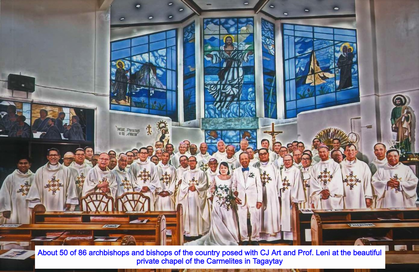 About 50 of 86 archbishops and bishops of the country posed with CJ Art and Prof. Leni at the beautiful private chapel of the Carmelites in Tagaytay