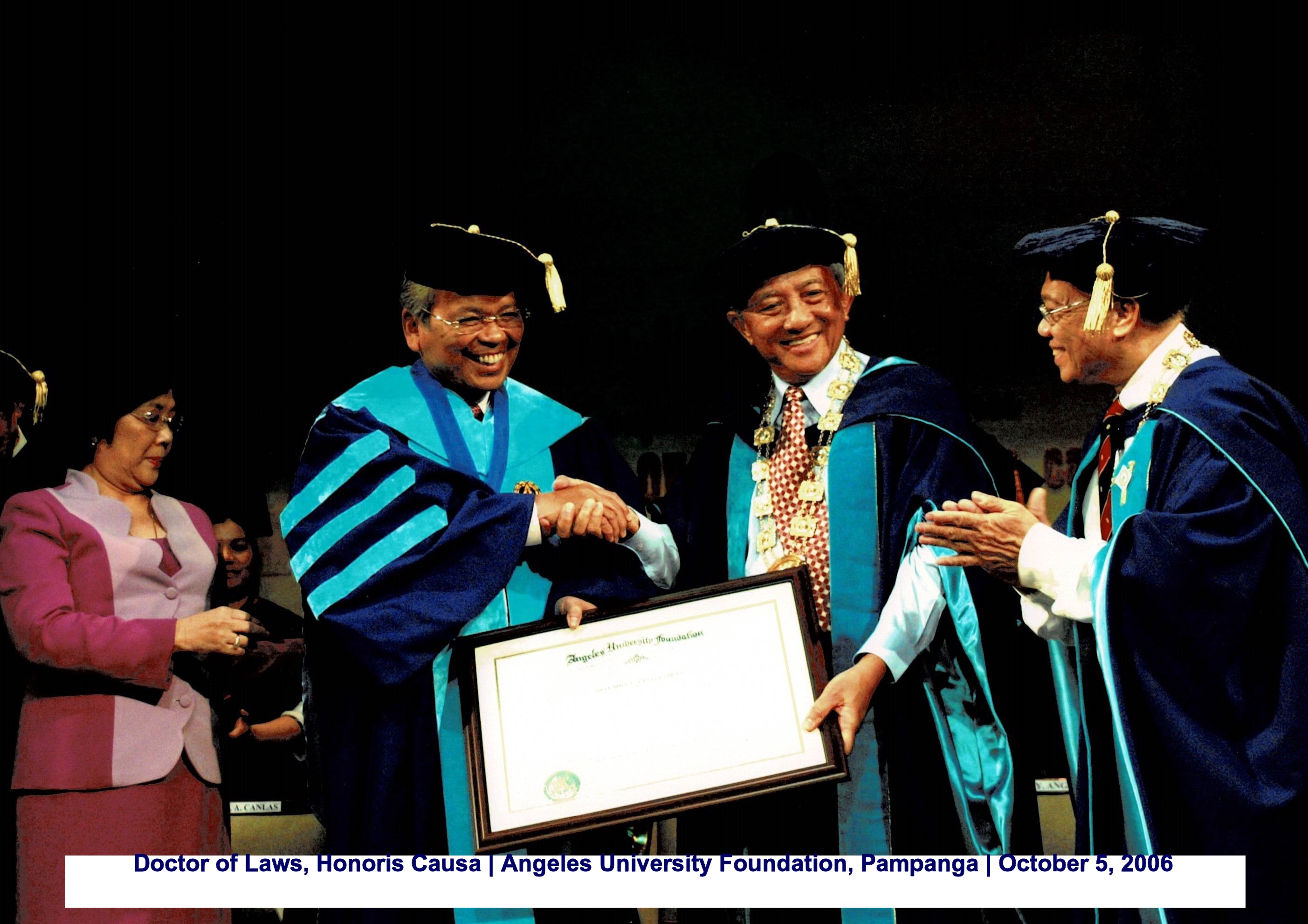 Doctor of Laws, Honoris Causa Angeles University Foundation, Pampanga October 5, 2006